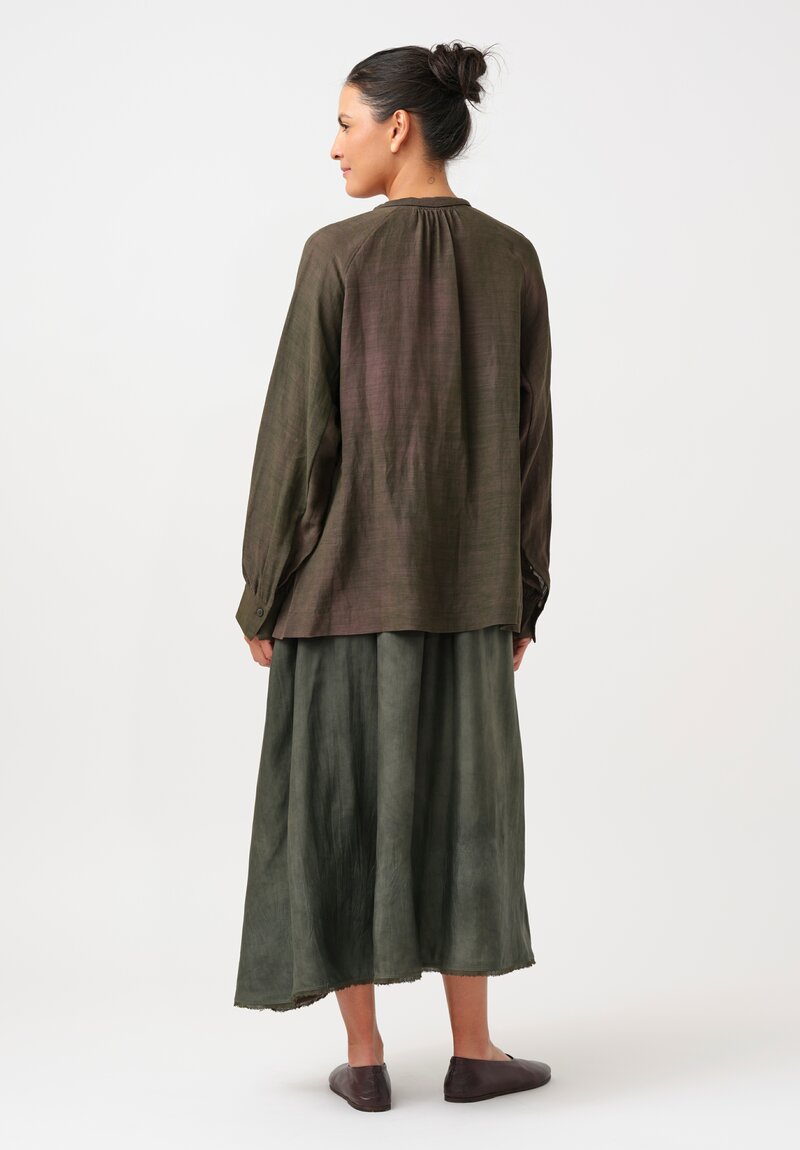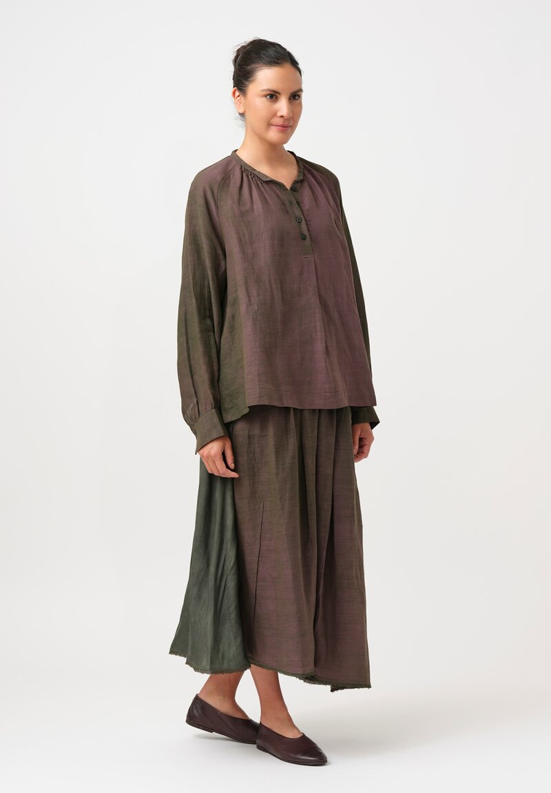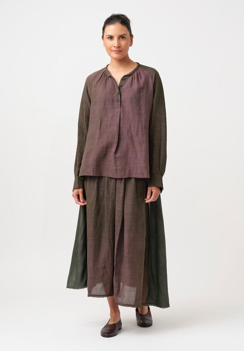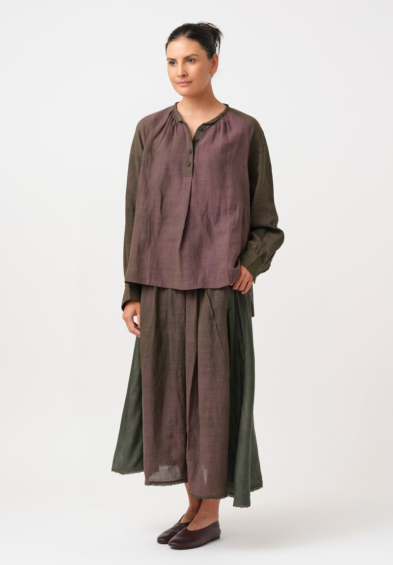 • Ziggy Chen Cotton Half-Placket Top in Kombu Green & Purple