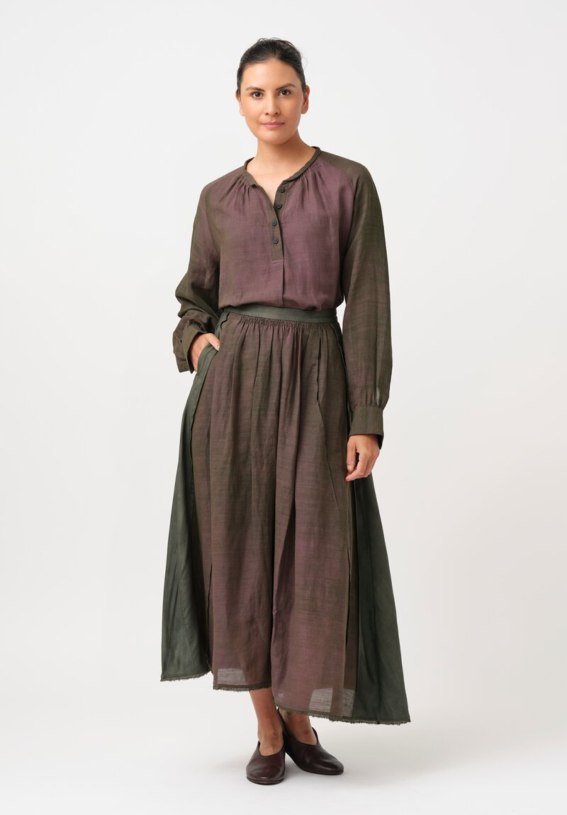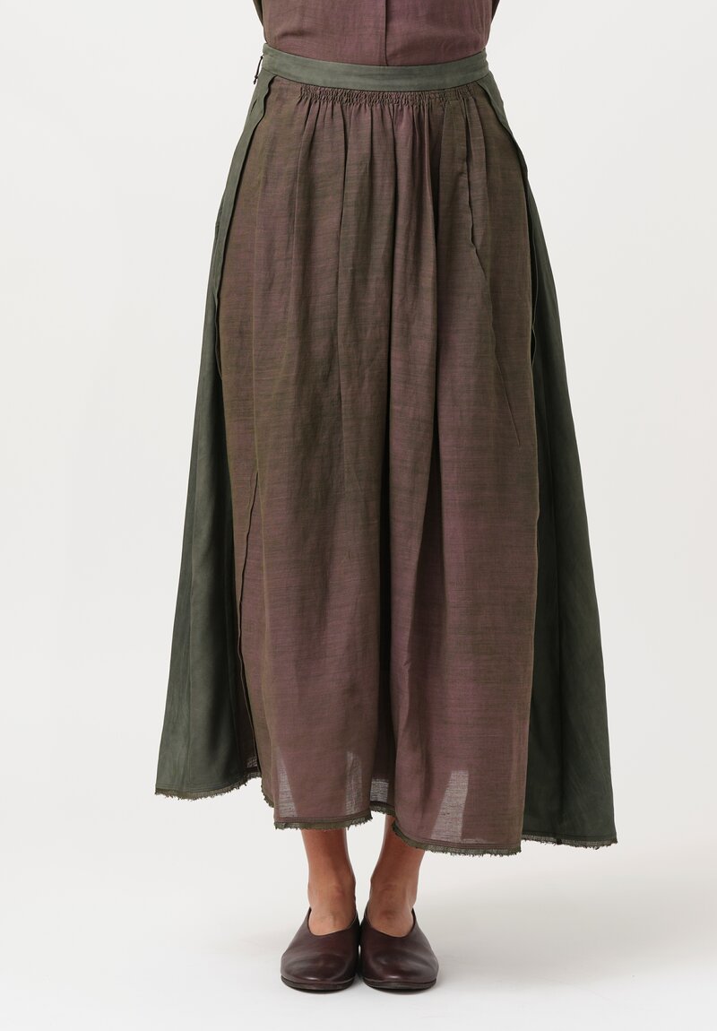 Ziggy Chen Silk & Cotton Collaged Skirt in Kombu Green & Purple