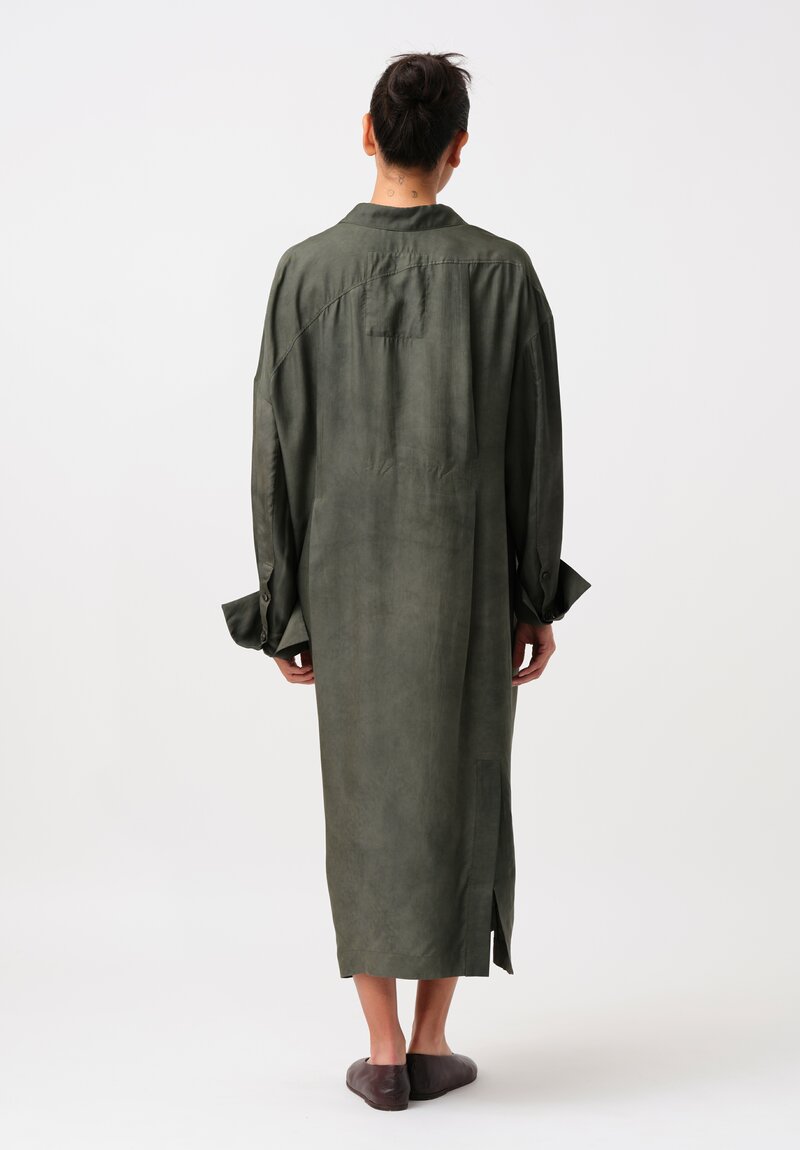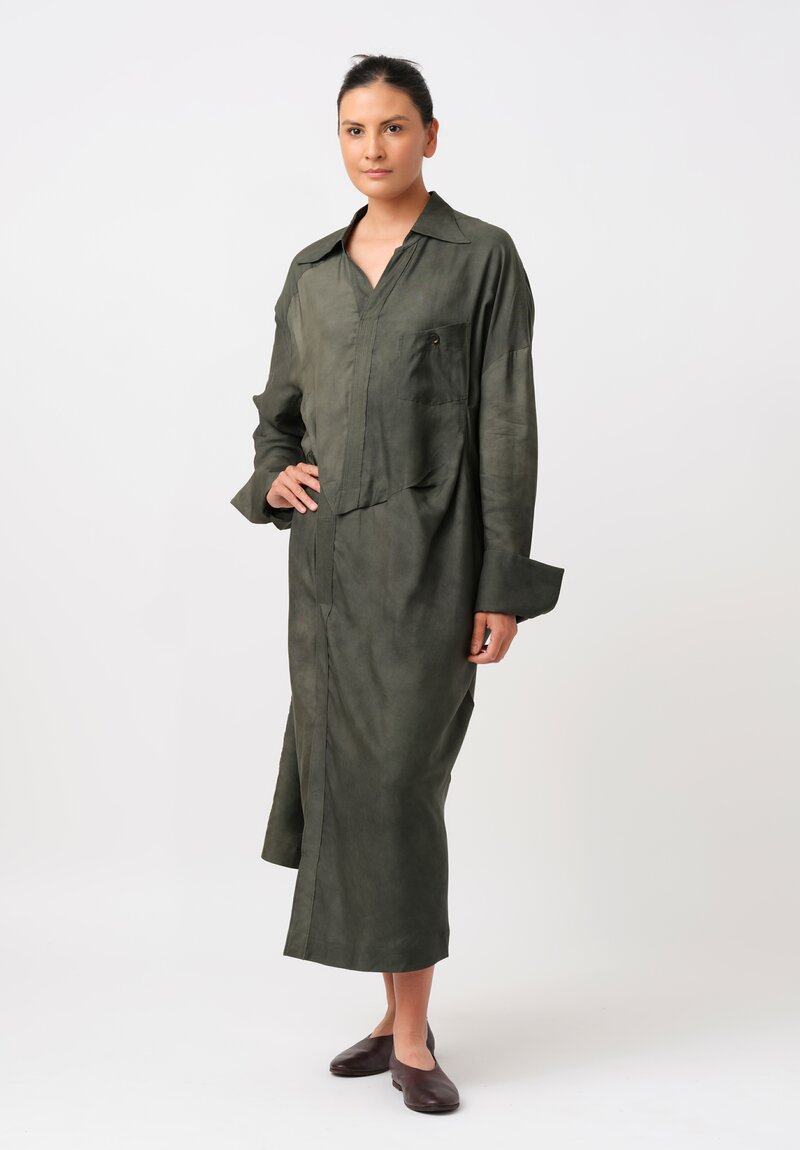 Ziggy Chen Silk Placket Detail Shirt-Dress in Kombu Green