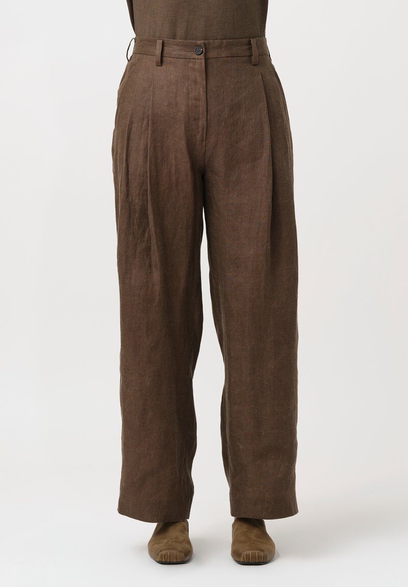 Ziggy Chen Straight Leg Pleated Pants in Bark Brown