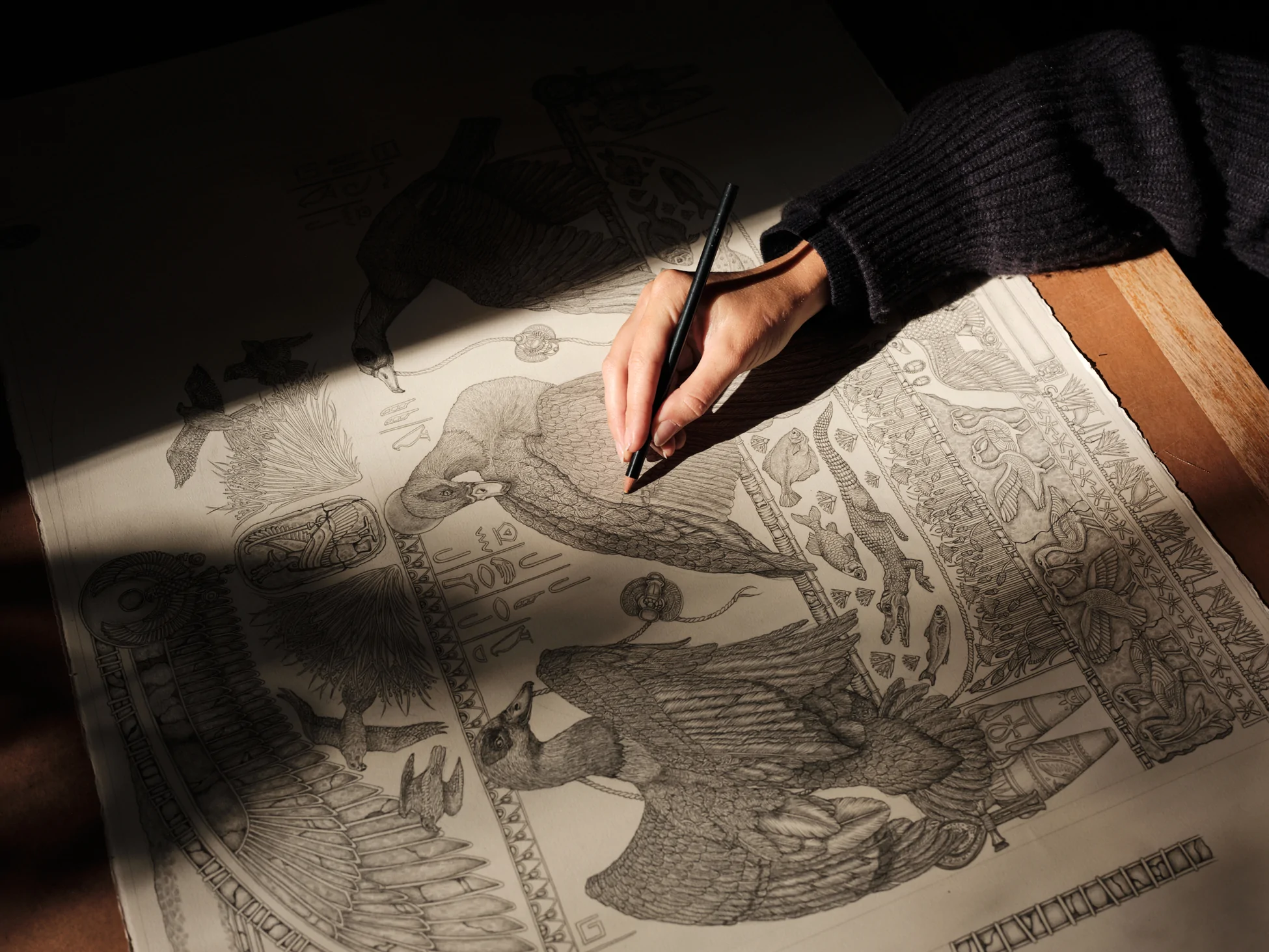 “This collection references formal Victorian zoological and botanical illustrators such as John James Audubon, Maria Sibylla Merian, and Albertus Seba. The composition, colours and framing of these artworks was referenced, alongside the detailed study of each creature’s appearance. Subjects were usually shown in their natural setting, and often in an animated pose. This research sits alongside tales of explorers who ventured into foreign lands in the hope of discovering new species, usually bringing with them much disruption and trouble for the native fauna and peoples. ” –Sabina Savage on the collection