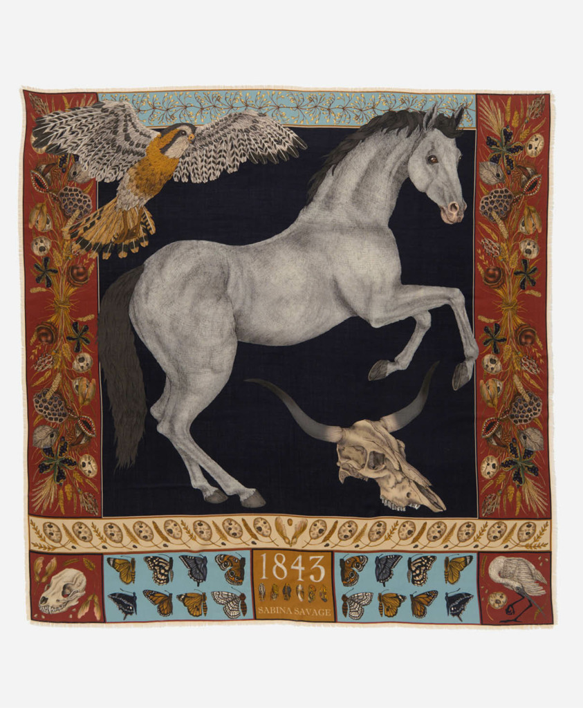 Sabina Savage launched her eponymous, luxury scarf brand in 2013, offering heritage inspired elaborate prints on exquisite fabrics. Each scarf is expertly designed in London then produced to the highest quality and skillfully hand-edged by the renowned artisans of Como, Italy.