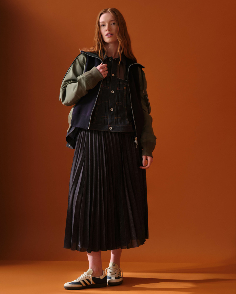 Riffing upon classic wardrobe elements is practically second nature to designer Chitose Abe… With just a few cuts of her scissors, she transforms classical suits into contemporary dresses, soft cardigans into structured, origami-esque tops. This latest delivery for Spring Summer 2025 focuses on the architecture of fabric and pattern–intermixing plaids, leopard prints, feminine sheers and textural steam pleating.