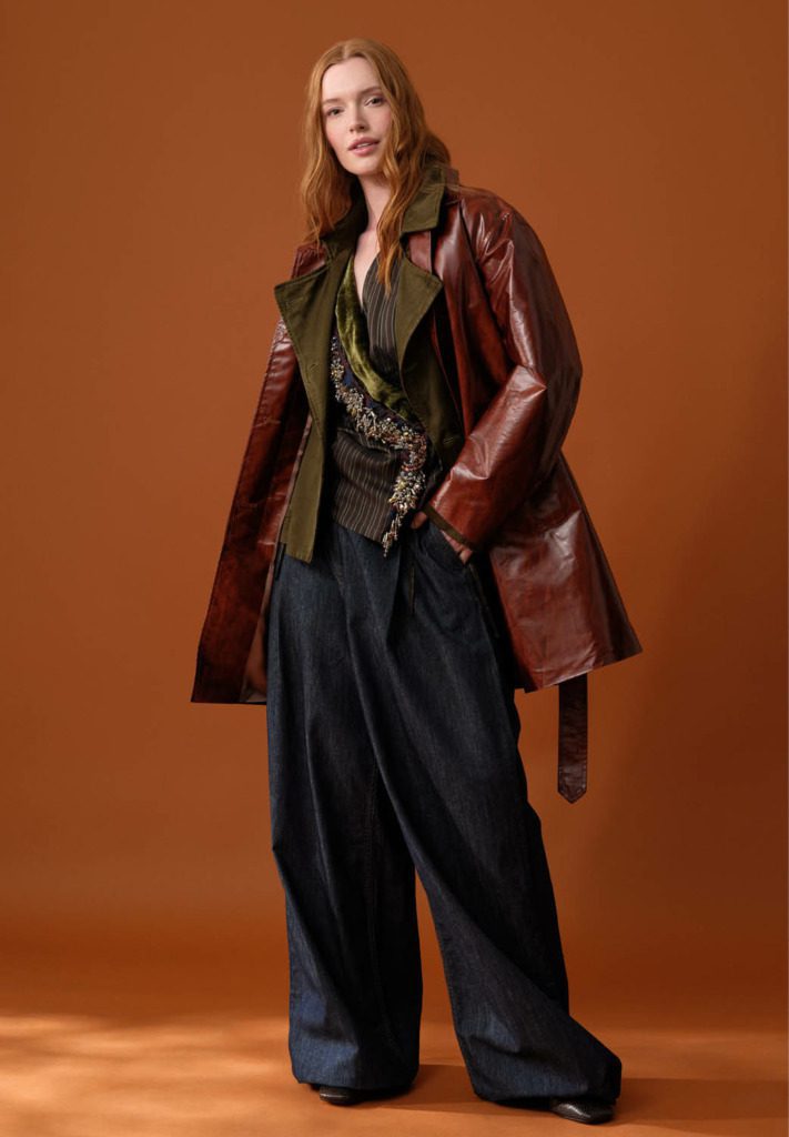 Fall/Winter 2025 marks Julian Klausner’s first collection for the house after Dries retired late last year. Naturally, Julian’s visual debut arrives with bated breath–and he has stepped into the spotlight with vigor. Rich in tactile contrast, the delivery explores tension between shimmering versus matte, structured versus fluid and austerity versus exuberance. Deep jewel tones define the palette, alongside dramatic metallics and crystalline beads.