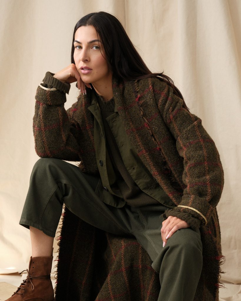 Serie Numerata, much like works in Album di Famiglia’s main offering, is designed to exist “beyond fashion.” A timeless quality permeates designer Monica Rusconi’s aesthetic decisions, from earthy patterns that fit seamlessly into the fall wardrobe to carefully distressed edges that will evolve uniquely with wear. As indicated by the name, these pieces are made in very limited quantities and, as with all things the Album di Famiglia family makes, texture is key.