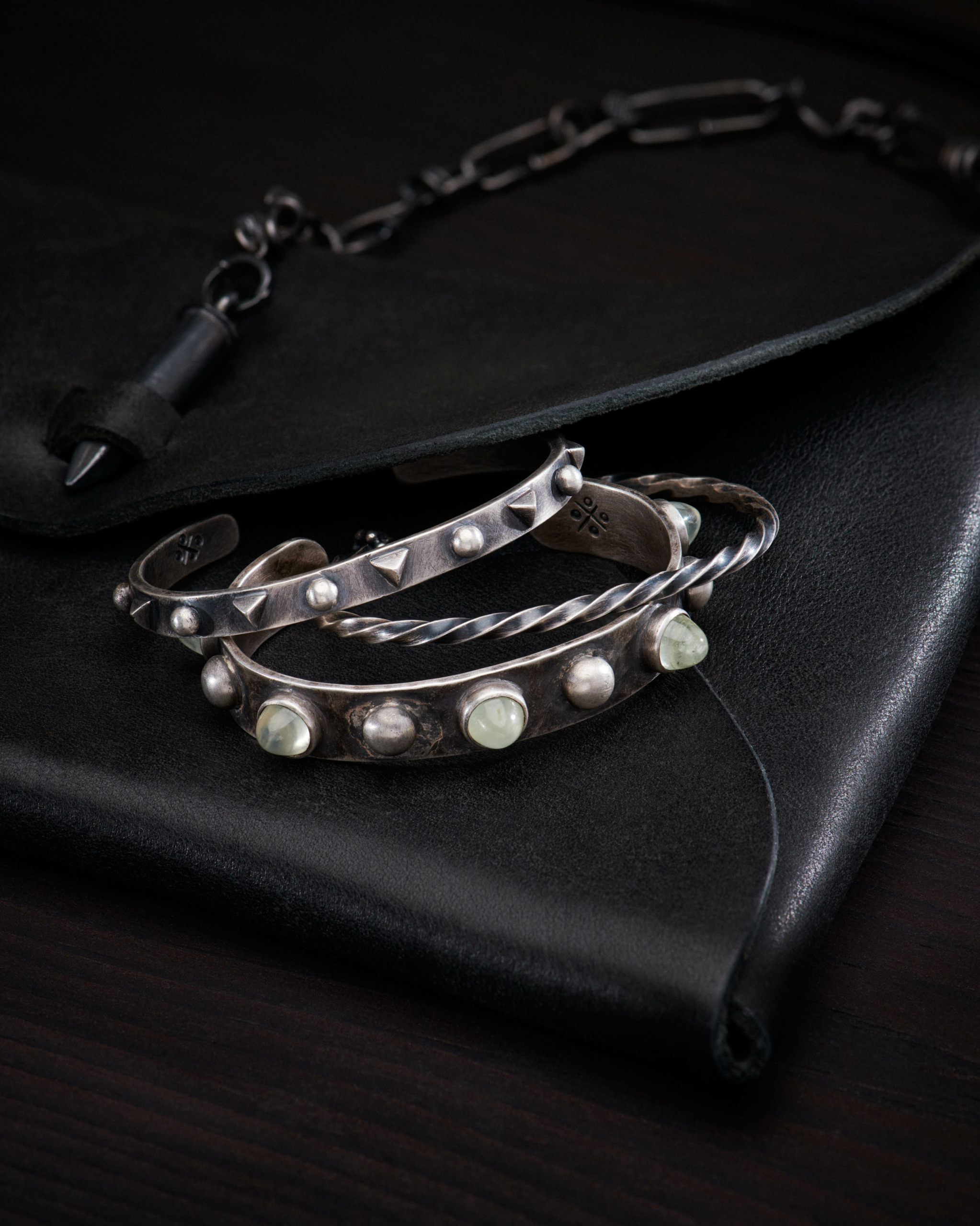 Miranda Hicks’ jewelry blends rugged, natural elements with a bold, contemporary edge. Made primarily in oxidized sterling silver, her works honor traditional silversmithing techniques while still bringing a fresh sensibility to the medium.