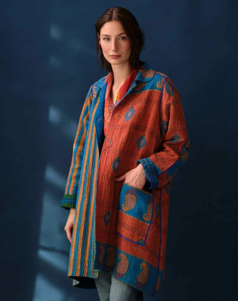 Each piece Mieko designs is a truly original, reversible composition of beautiful prints, color and stitching, and is deeply personal to Mieko. Colors are equally unusual and dynamic, demonstrating the rich and informed aesthetic of Mieko and her cooperative of artisans. Her perfectly tailored pieces are refined and intelligent, elevating the casual with a mastery of drama and volume.