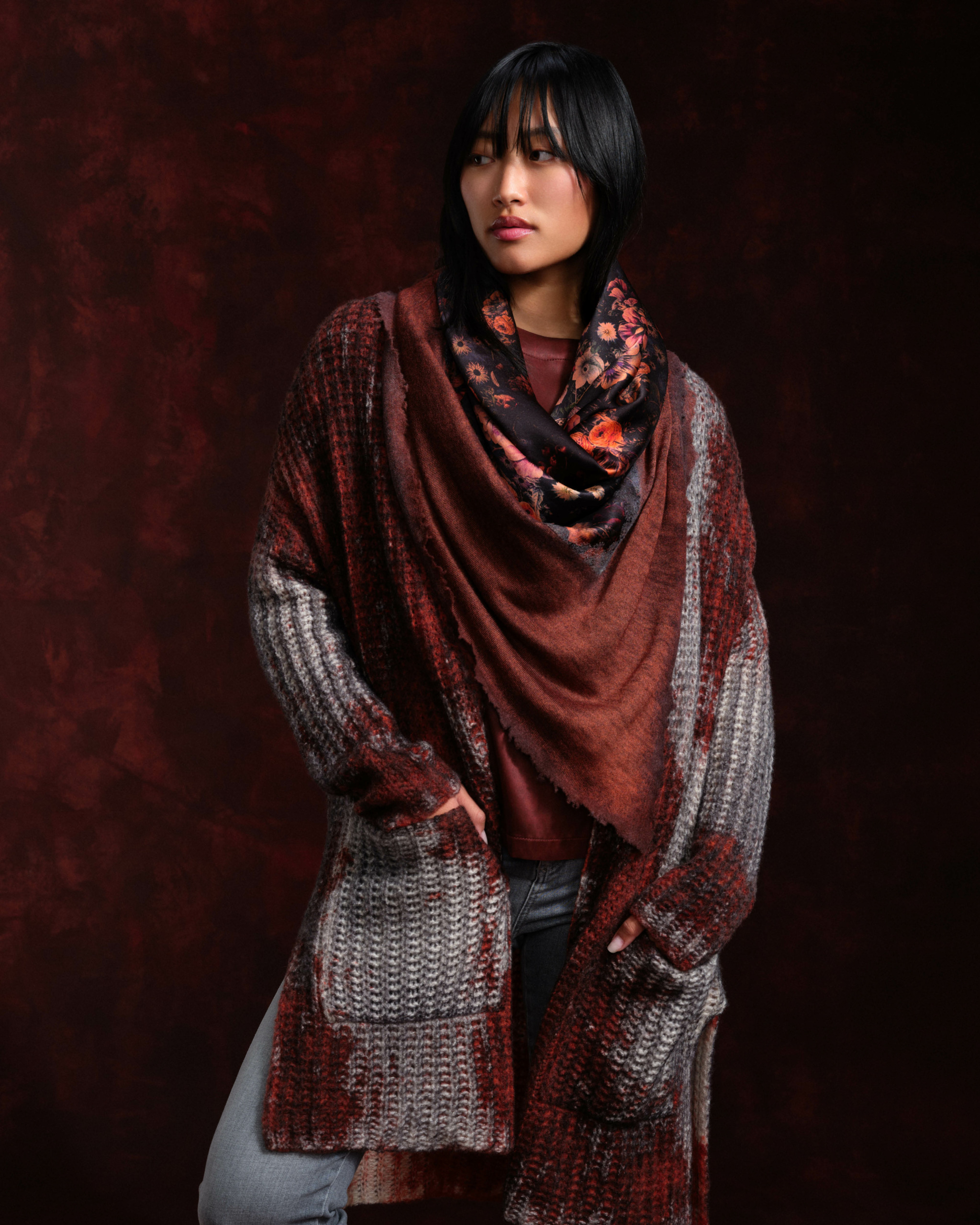 Hand-Painted Cashmere Gauze Scarf in Nero & Mandarancio Orange
