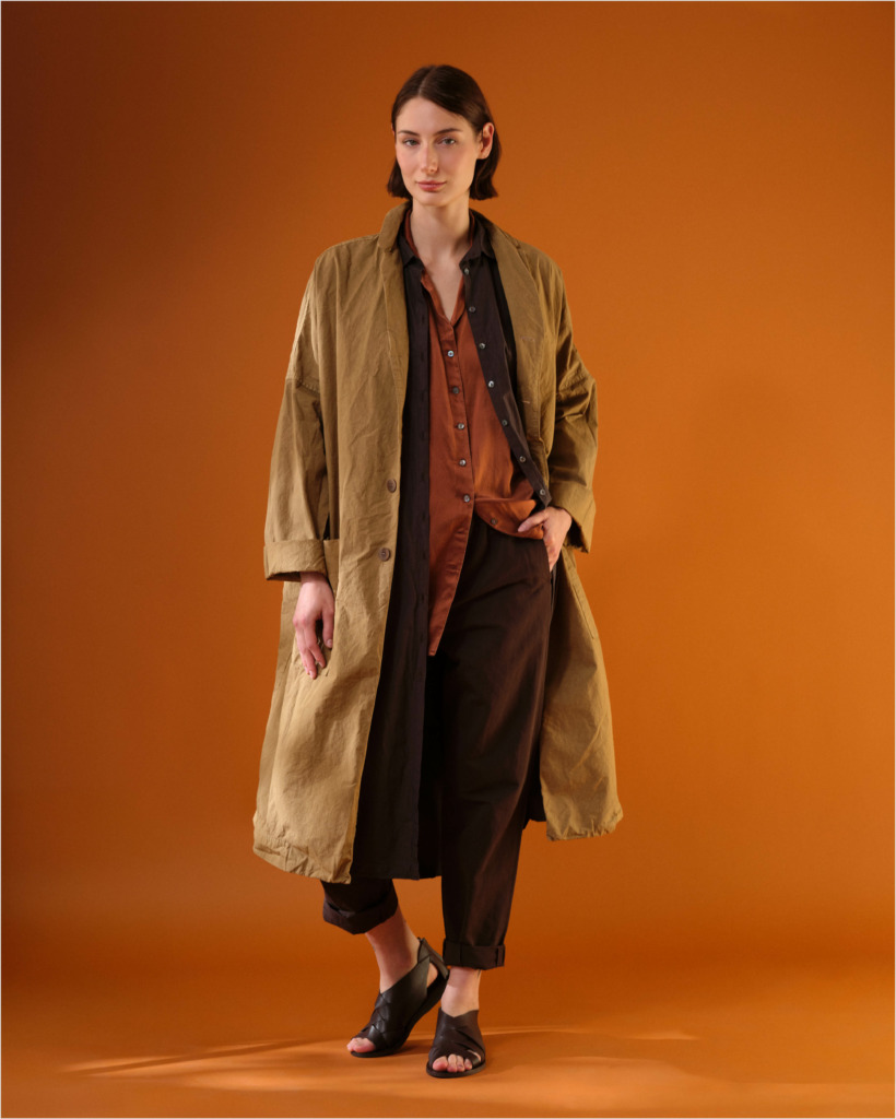 Album di Famiglia’s Spring/Summer 2024 delivery builds upon twenty-five years of atelier mastery. Soft and deliciously laerable, the collection is made up of paper cottons and slippy silk blends in a mix and match presentation of rust, coral and umber. While these pieces are perfect for a walk around town or a trip faraway, the Album wardrobe is so soft and easy to wear, you may be tempted to nap in them too.