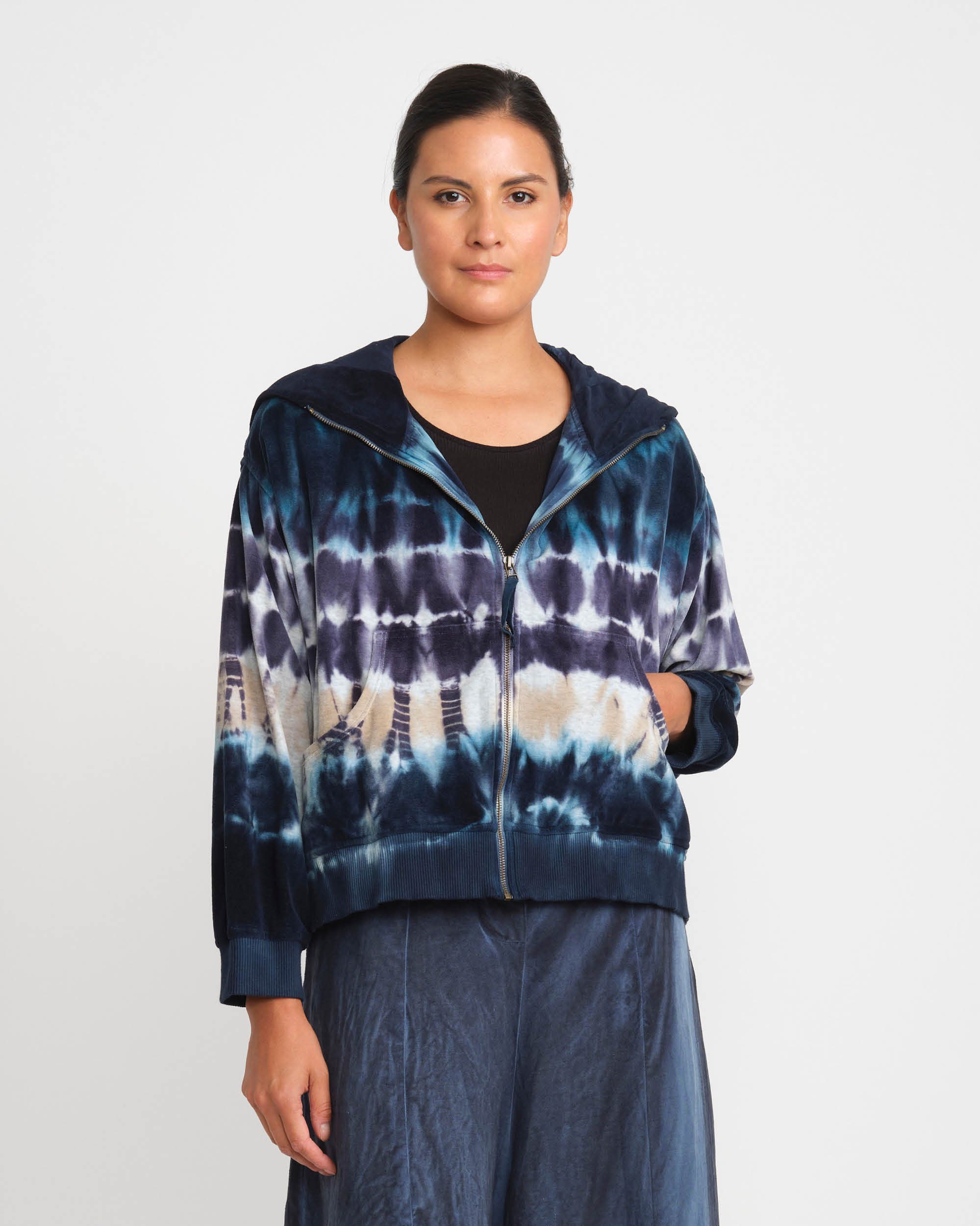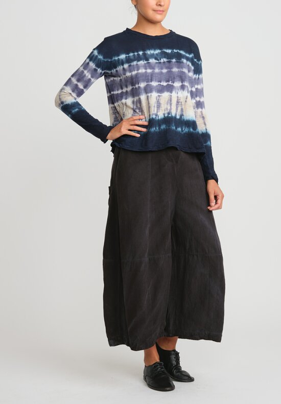 From the beeswax batik of Indonesia to Japanese shibori, Gilda collaborates with many diverse artisans to infuse her clothing with complex and rich colors. Gilda demonstrates astonishing creativity in her signature dyeing techniques, exploring the use of unconventional materials like coal, copper and gypsum as well as handwork methods including stamping and the use of foils in order to get the desired bold look of her mind’s eye.